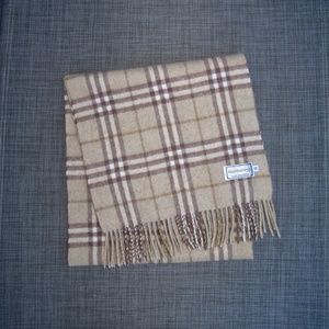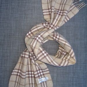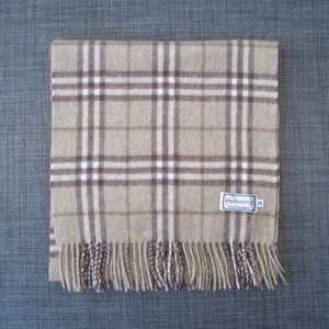 BURBERRYS Pure Cashmere Nova Plaid Scarf Tan Brown Natural 11.75 x 53