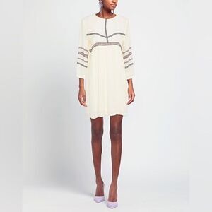 Ba&Sh Colombe Embroidered Boho Mini White Shift Dress Long Sleeve Size M