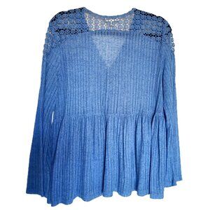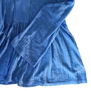 Babydoll Top Semi-Sheer Gauzy Blue Flaired Long Sleeve Lace Shoulders EUC Large
