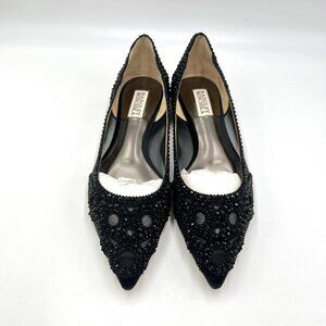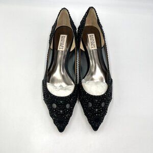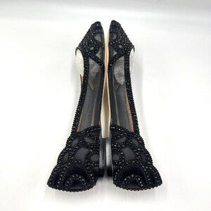 Badgley Mischka BHLDN Size 8 Gigi Pointed Toe Jeweled Black Ballet Flats Shoes