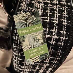 Badgley Mischka Backpack Tweed Quilted Studded Black White New With Tags