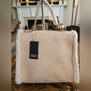This elegant cream crossbody/handbag features a luxurious shearling design, perfect for adding a touch of sophistication to any outfit. Ideal for both casual and formal occasions. Vegan Leather 9" T
