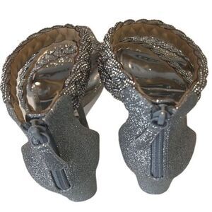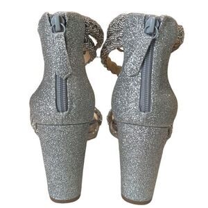 Badgley Mischka Fenix Silver Braided Rhinestone Block Heels Size 8