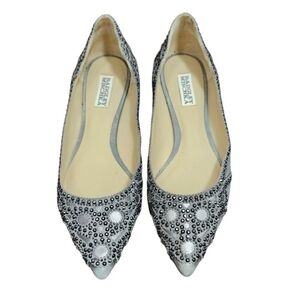 Badgley Mischka Gunmetal Gigi Crystal Platinum Pointed Toe Ballet Flats Shoes 9