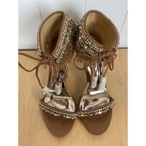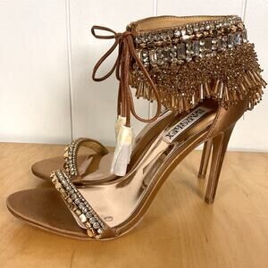 Badgley Mischka Women's Katrina Embellished Satin Ankle-Tie High Heels Size 7