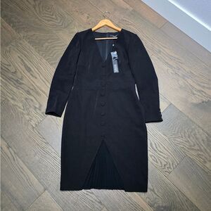 🆕️ Badgley Mischka Tailored Buttoned Long Sleeve Pleated Midi Dress in Black