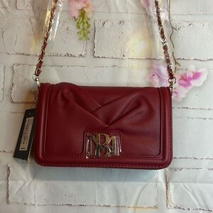 Badgley Mischka vegan leather brick red small pleaded Crossbody NWT. Chain wrapped strap.