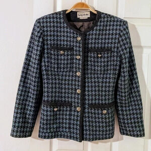 Keywords: houndstooth blazer, tweed jacket, vintage blazer, womens blazer, size 6 blazer, button front blazer, career blazer, classic jacket, retro jacket, blue tweed blazer, bagatelle blazer, elegant blazer, formal jacket