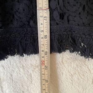 Elevate your wardrobe with this stunning Bailey 44 Tusk Woven Lace Off The Shoulder Bell Sleeve Top in classic black. The top features a relaxed fit, spaghetti straps, and a pullover closure for easy wear. The off-the-shoulder neckline and fringe accents add a touch of bohemian flair, making it perfect for any occasion from casual to formal.