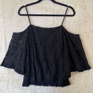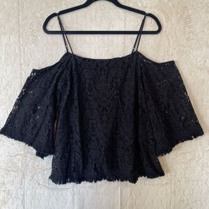 Bailey 44 Tusk Woven Lace Off The Shoulder Bell Sleeve Top Black Sz Small