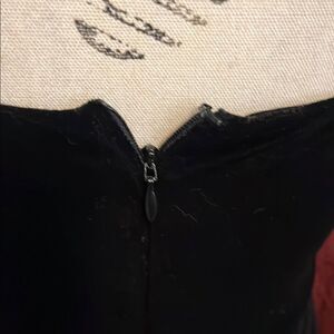 Bailey 44 Black Princess Velvet Ruffle Front Petite Dress, zipper closure on the back. Size XSP-petite, side tie detailing, adjustable straps.