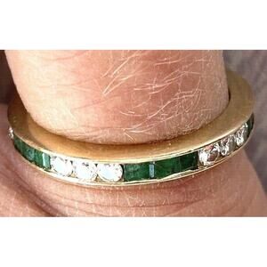 Bailey Banks Biddle 2CT TOTAL Emerald/Diamond 14KT Yellow Gold Eternity Ring 5