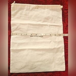 **Keywords:** Balenciaga, drawstring dust bag, cover pouch, tote duster, protector, travel storage organizer, handbag protector, purse cover, shoe storage, wallet pouch, wristlet cover, clutch protector, coin purse bag, luxury storage, designer accessory, travel organizer, new condition, pristine, versatile use, cream