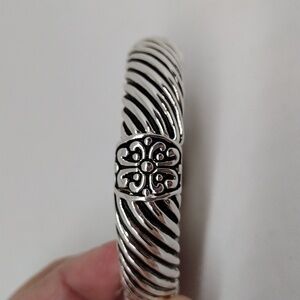 This beautiful antiqued-finished bangle stretches to provide a comfortable fit.