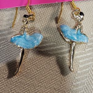 Ballerina dancer earrings. Blue enamel