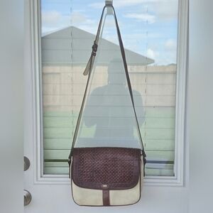 Bally Crossbody Vintage Purse Woven Leather 3 compartments Cream & Brown