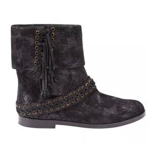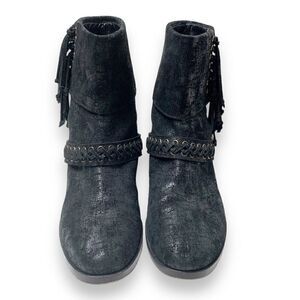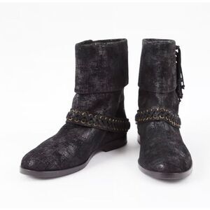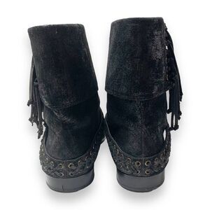Balmain Black Metallic Shimmer Suede Western Fringe Boots Women’s Size 38.5 US 8