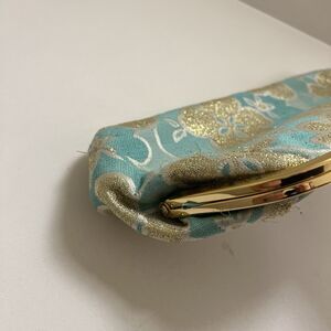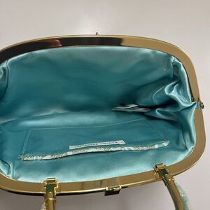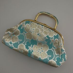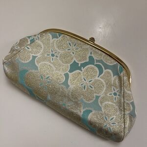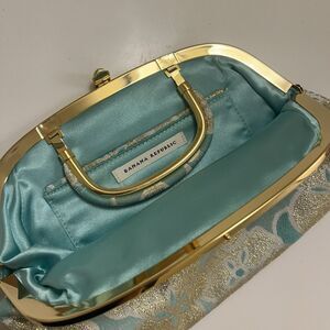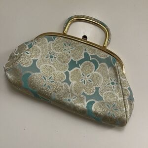 Banana Republic 2005 Silk Evening Clutch Bag Floral Gold Metallic Tiffany Blue