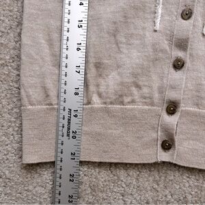 Good condition. Women’s Banana Republic lightweight cardigan. Elegant cardigan sweater with front button closure and featuring intricate white floral detail on front. Perfect for adding a touch of sophistication to any outfit.