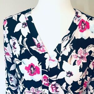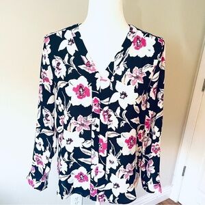Banana Republic - Petite Long Sleeve Blouse – Navy & Pink Floral - Size XS