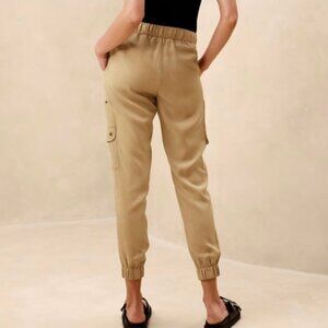 Size XL Banana Republic Pull-On Tan Jogger Cargo Pants. 100% lyocell. Elastic drawstring waist. 6 pockets. Elastic cuffs. Waist. 20” Rise 12.5” Inseam 27”. Brand new and never worn. Excellent condition.