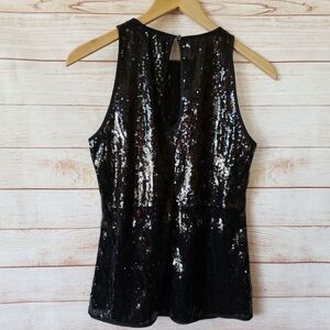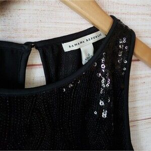 Banana Republic Sequin Round Neck Sleeveless Tank Top Women's Size 0 Black
