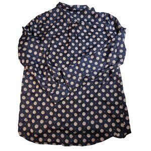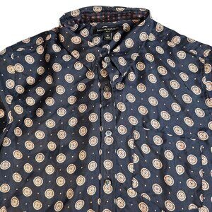 Once upon a time, there was a shirt crafted from the finest silk, adorned with a mesmerizing medallion pattern. This Banana Republic creation was a tapestry of elegance and comfort, designed to drape over its wearer like a gentle embrace. With a timeless style, this shirt whispered tales of sophistication and adventure, waiting to be part of the next chapter in your wardrobe.