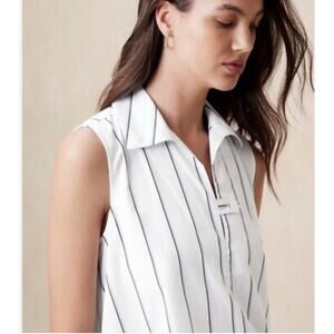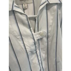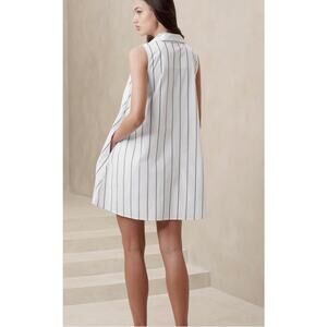 Banana Republic Women Striped Poplin Mini Dress Size M White Blue Preppy Classic