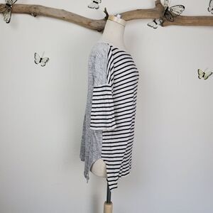 Oversized linen 3/4 sleeve tee. Seamless dolman sleeve. Gray panel back