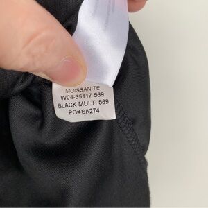 Black sheer material with lining to about the knee, faux wrap, ruffle cap sleeve, a pull in the fabric (pictured), perfect for weddings, summer & summer parties, great overall condition!