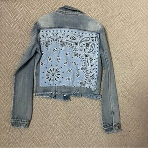 Super soft, light wash denim jacket. Light blue bandana featured on the back. Size 8