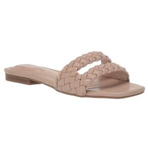 Women's Sessily Open Toe Flat Slide Sandals from Bandolino. Two braided straps bring texture to this warm weather style. The comfort footbed in this slide allows for all day lasting comfort. 1/3" heel. Slip on. Open square toe.