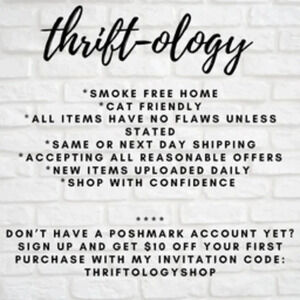 Don’t have a Poshmark account yet? Sign up and get $10 off your first purchase with my invitation code: THRIFTOLOGYSHOP