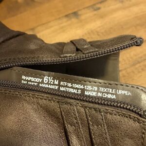 Baretrap Rhapsody Ankle Boots, Size 6.5M, Brown. 2” heel, Side Zipper. These shoes have a natural blotchy looking finish. Good Used Condition.          189/II