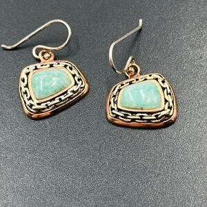 Barse Signed Sterling Silver Bronze Ornate and Turquoise Dangle Earrings