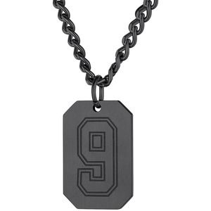 Number Necklace for Men Teens : Simple and modern Jersey number pattern, featuring clean lines and a deep profile in a dog tag, smooth edge won't hurt your skin. this number pendant come with 4mm width adjustable cuban chain from 22” to 24” length.