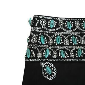 Basil & Maude Vintage Women’s High Waisted Turquoise Beaded Black A Line Skirt