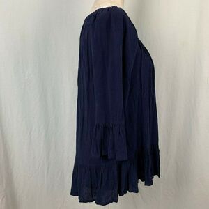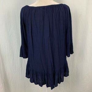 Beach Lunch Lounge Off the Shoulder Peasant Top S Blue Peplum Ruffle Bell Cuff