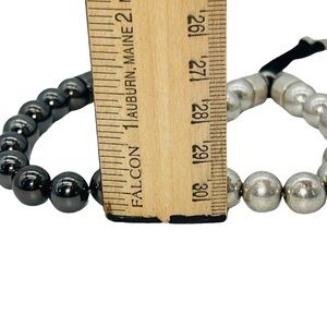 Beaded Bracelet Set Black & Silver Stretchy Adjustable.