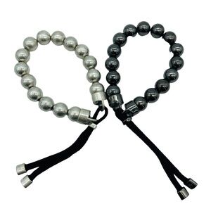 Beaded Bracelets Set Black & Silver Stretchy Adjustable Unisex