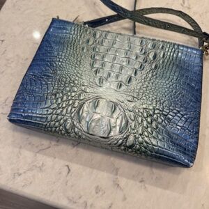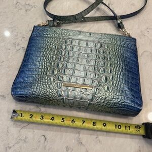EUC Brahmin sleek crossbody Remy style in Haven Melbourne Ombre (Cerulean blue to mint green with pearl/iridescent tipping results in a lovely ethereal finish. Zip top keeps essentials secure, interior and exterior pockets and key fob clip add to bag functionality. Can be carried with or without 25" strap.  DIMENSIONS 12.2″ W 8.5″ H 2.0″ D
