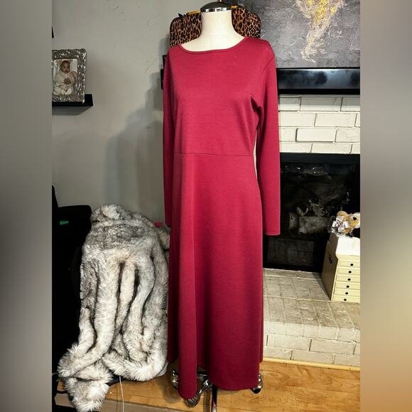 This is a great casual dress that can be accessorized to make it fabulous. The color is a pinkish rose. There are two snags on the right arm which can be pulled back through but I have price this dress accordingly take it home and make it yours!