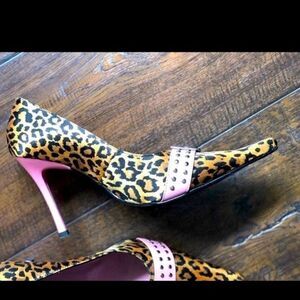 Beautiful Luichiny Leopard Print Shoes, Pointed toe,Studded,Pink, Buckle New