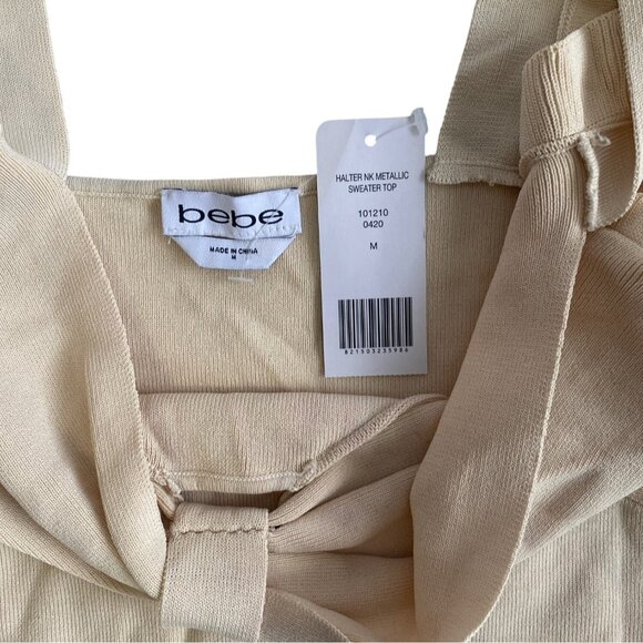 Bebe Metallic Halter Neck Sweater Top Medium NWT Gold Tan Chic Casual