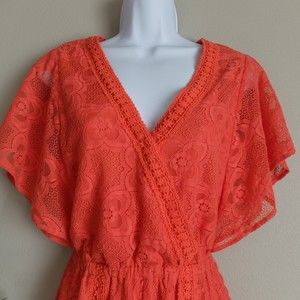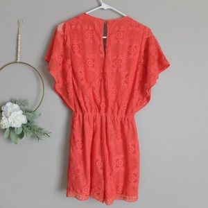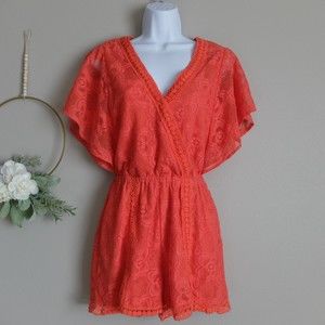 Bebe Tatiana Orange Lace Flutter Sleeves Romper NWT Size XS