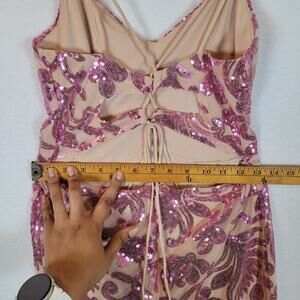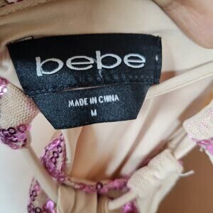 Bebe Women Sequin Open Back Sparkle Mesh Short Dress Size Medium Pink Y2k Barbie