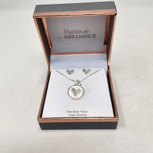 Believe by Brilliance Heart Necklace Earring Set Silver Plated Cubic Zirconia