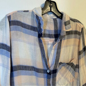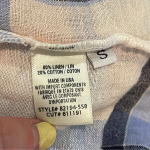Bella Dahl plaid button down front pocket linen blend long sleeve shirt blouse S