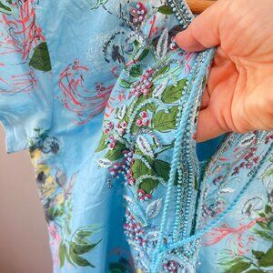 Bella Tu Embroidered Light Blue Floral Tunic Dress W/ Tassels & Bead Trim - Sz.
