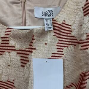 Belle Badgley Mischka Red and Gold Metallic Floral Puff Sleeve Dress Size: 2